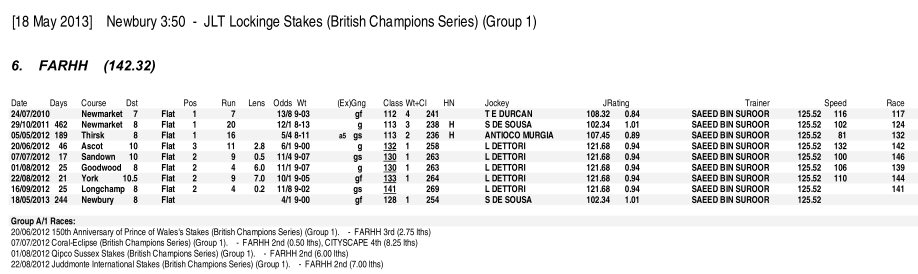 Fig 1. Detail of the Form data (top rated Newbury 3.50 18th May, 2013)
