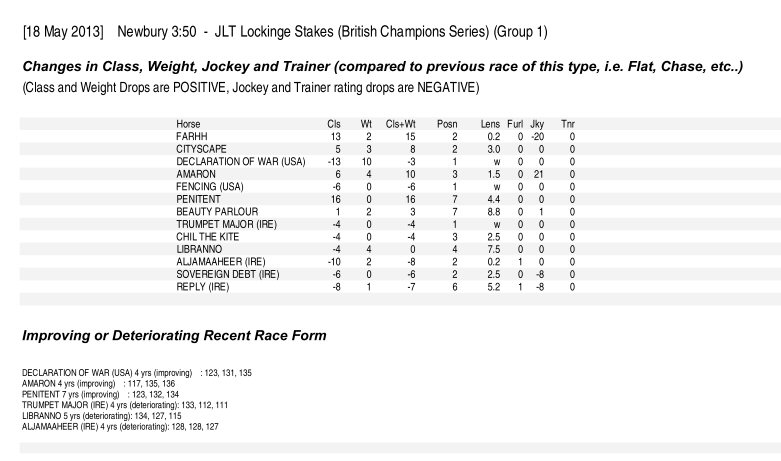 Fig 2. Improving or not? (Newbury 3.50 18th May, 2013)